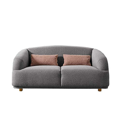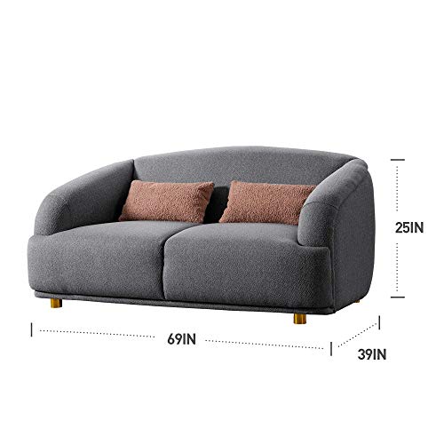 Acanva Modern Barrel Back T-Shaped Seat Cushion Design Living Room Sofa, 69" W Loveseat, Grey