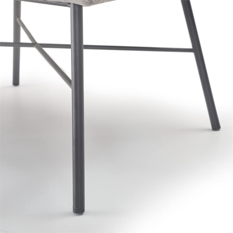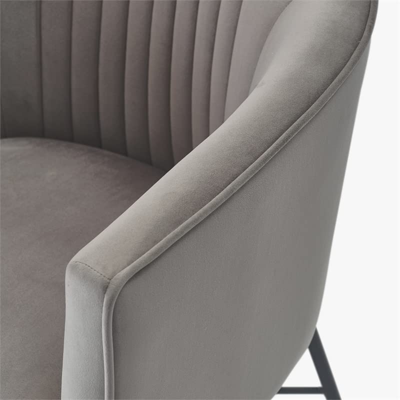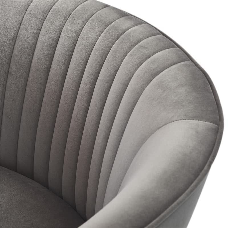 - Velvet fabric adds a plush feel to the tufted back and cushioned seat and arms