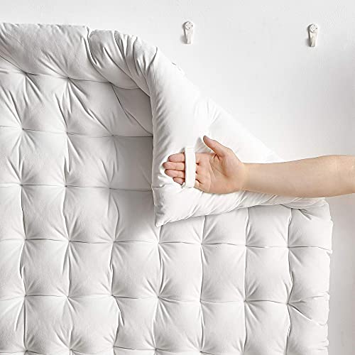 Details: Add both function and style to your Twin or Twin XL sized bed with the Rainha Cushion Tufted College Headboard from DormCo. This white headboard elevates what you can expect from comfort with its thick cushioned fill and soft but stylish velvet exterior. Perfect for college dorm rooms or your bedroom at home, this tufted headboard adds that extra pop to your decor. Two sets of straps allow you to secure this headboard to your bedframe, while four loops enable you to hang the headboard to the wall using hooks for a polished look. This is especially convenient when you can't damage the walls, such as if you rent or are living in a college dorm, as you can use removable hooks to keep this headboard perfectly propped in place.