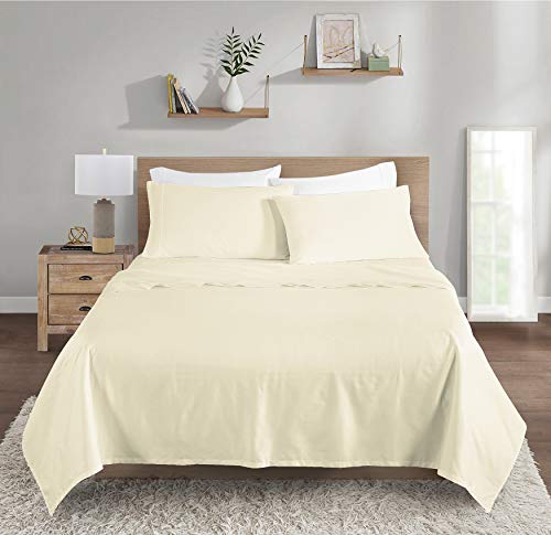 ELINEN Bamboo Viscose Sheet Set - Queen Size, 4 Piece Set with Deep Pockets up to 18 Inches - Luxuriously Soft, Cooling, and Silky Sateen Weave - Ivory (Queen)