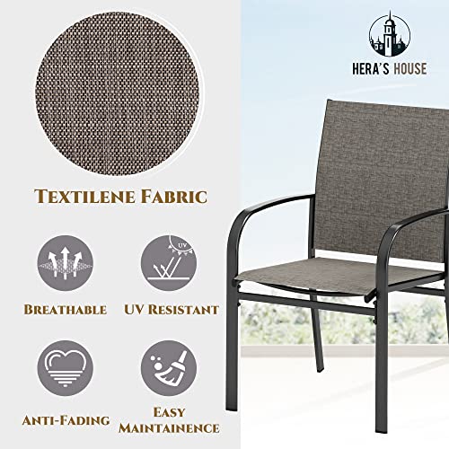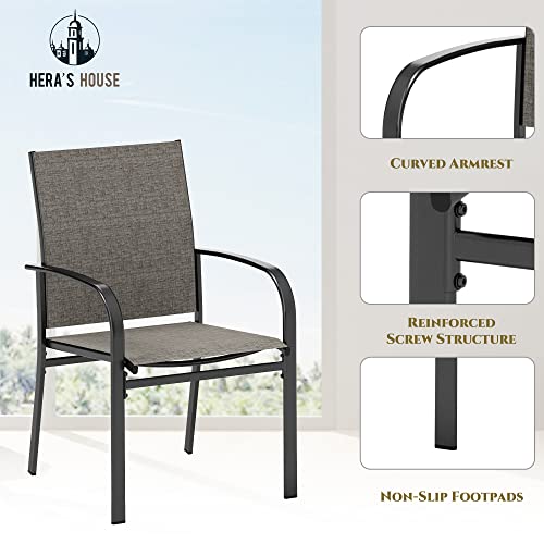 HERA'S HOUSE 5 Pieces Patio Dining Set, Outdoor Table and Chairs Set for 4, 4 x Grey Testilene Dining Chair, 37" Square Metal Dining Table, for Lawn Garden Backyard Deck
