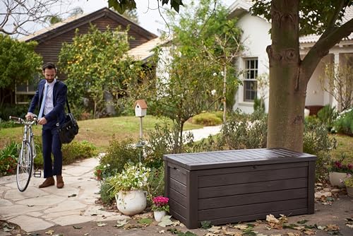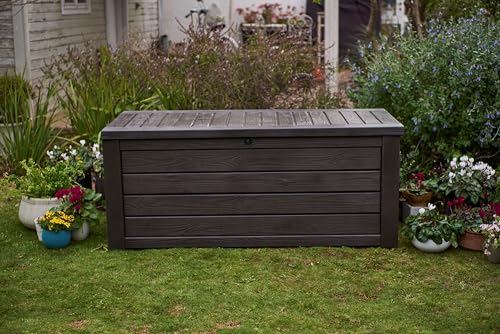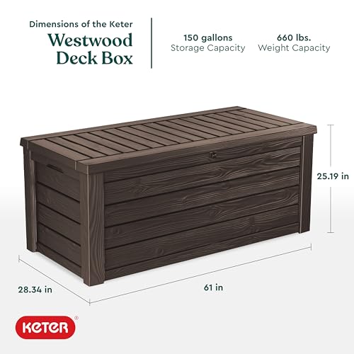 Keter Westwood 150 Gallon Plastic Backyard Outdoor Storage Deck Box for Patio Decor, Furniture Cushions, Garden Tools, and Pool Accessories, Espresso