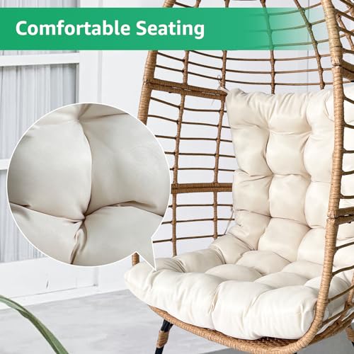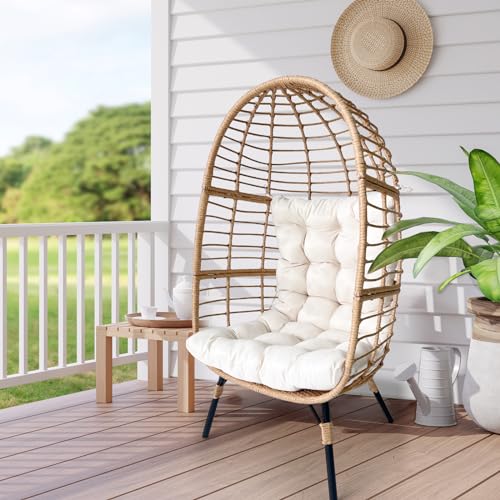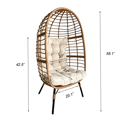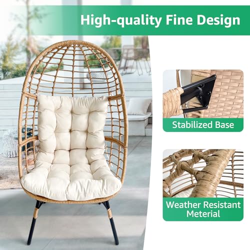 Meluvici Wicker Egg Chair, Small Outdoor Indoor Loung Chair, Rattan Patio Egg Chairs with Stand for Balcony, Porch, Living Room and Graden, Beige