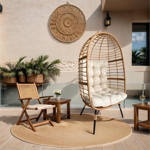 - Unique and Stylish Design: The Wicker Egg Chair's iconic design is instantly recognizable and adds a touch of modern elegance to any space. Faux rattan chair's curved shape and high back provide a comfortable and cozy seating experience.