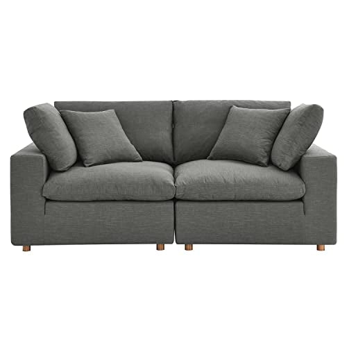 Modway Commix Down Filled Overstuffed 2 Piece Sectional Sofa Set, Two Corner Chairs, Gray