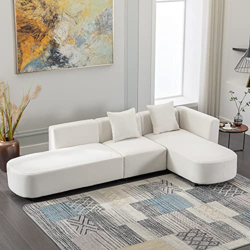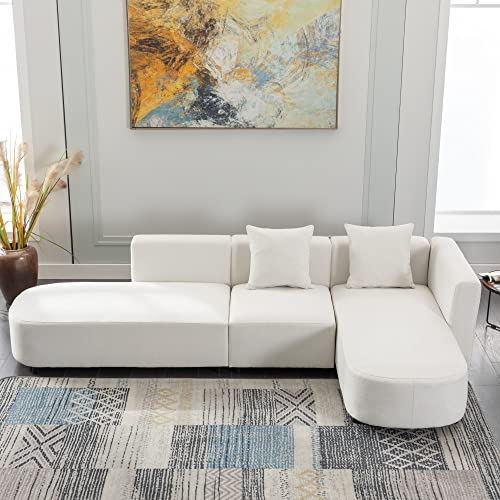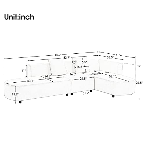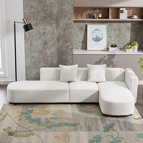 WILLIAMSPACE 110.2" Sofa Couch for Living Room, Luxury Modern Style Upholstery Sofa with 2 Pillows, L Shaped Sofa 4 Seat Couch for Apartment Office - Beige